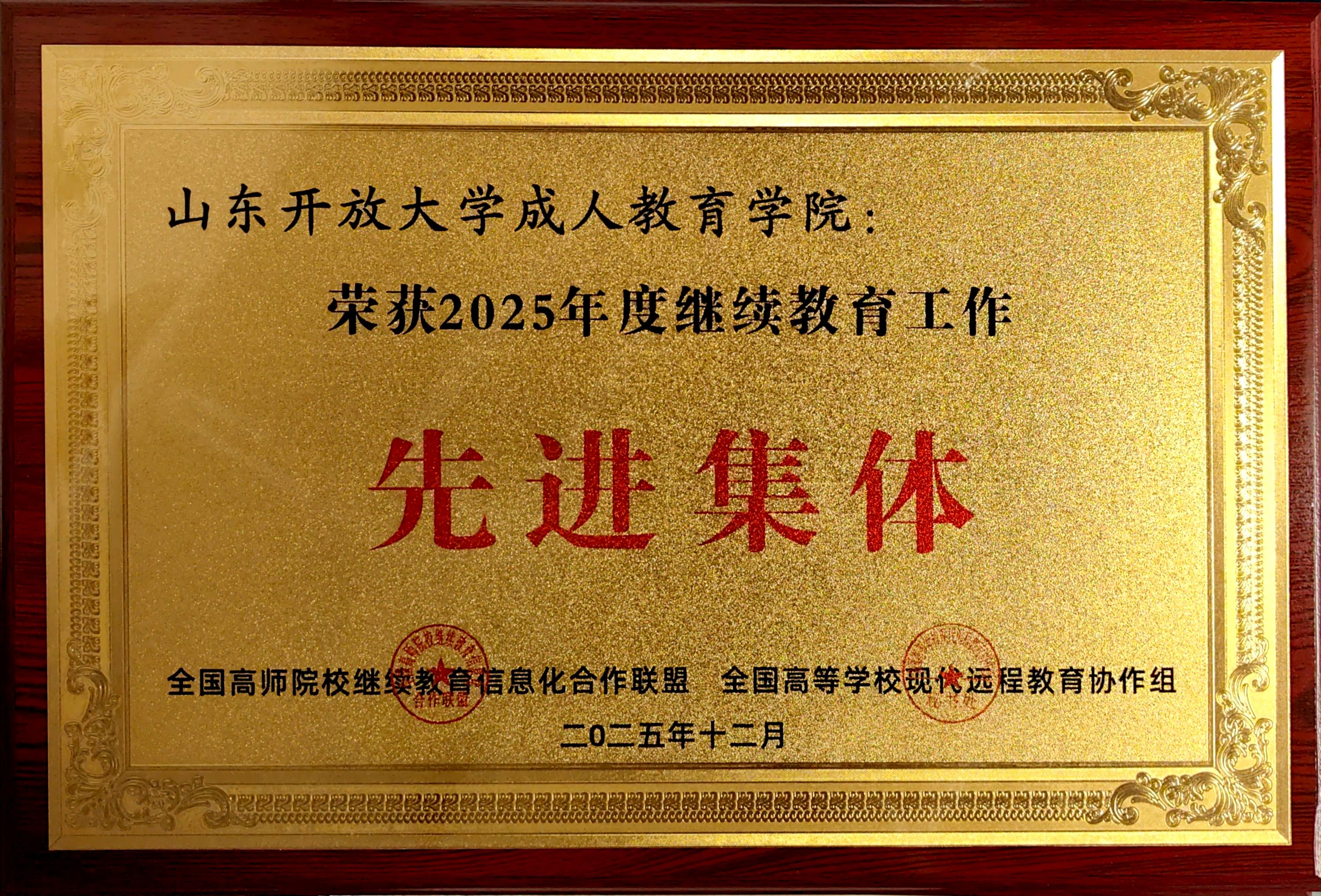 12月15日,全国高师院校继续教育信息化合作联盟年会在广西师范大学隆重召开。会上,由全国高师院校继续教育信息化合作联盟与全国高等学校现代远程教育协作组共同组织评选的2025年度继续教育工作“先进集体”结果正式揭晓,山东开放大学成人教育学院凭借扎实的工作成效和突出的社会贡献,成功获评“先进集体”荣誉称号