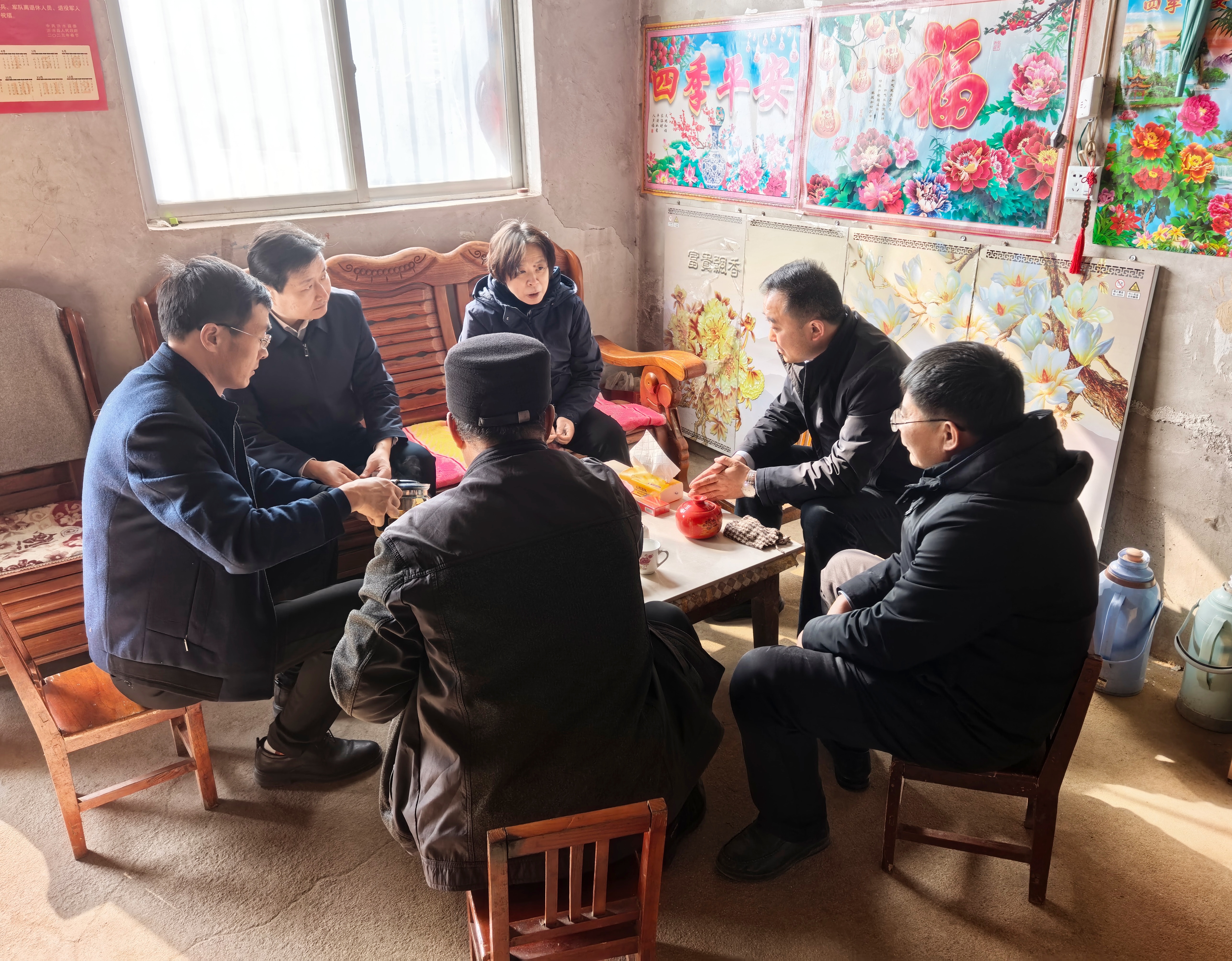 王瑛一行先后深入学校第一书记帮扶村——吴家楼子村、秦家庄村、北躲庄村,走进老党员和困难群众家中,与他们亲切交谈,细致询问他们的身体状况、家庭生活及实际困难,为他们送上慰问品和新春祝福,传递组织的关怀与温暖。