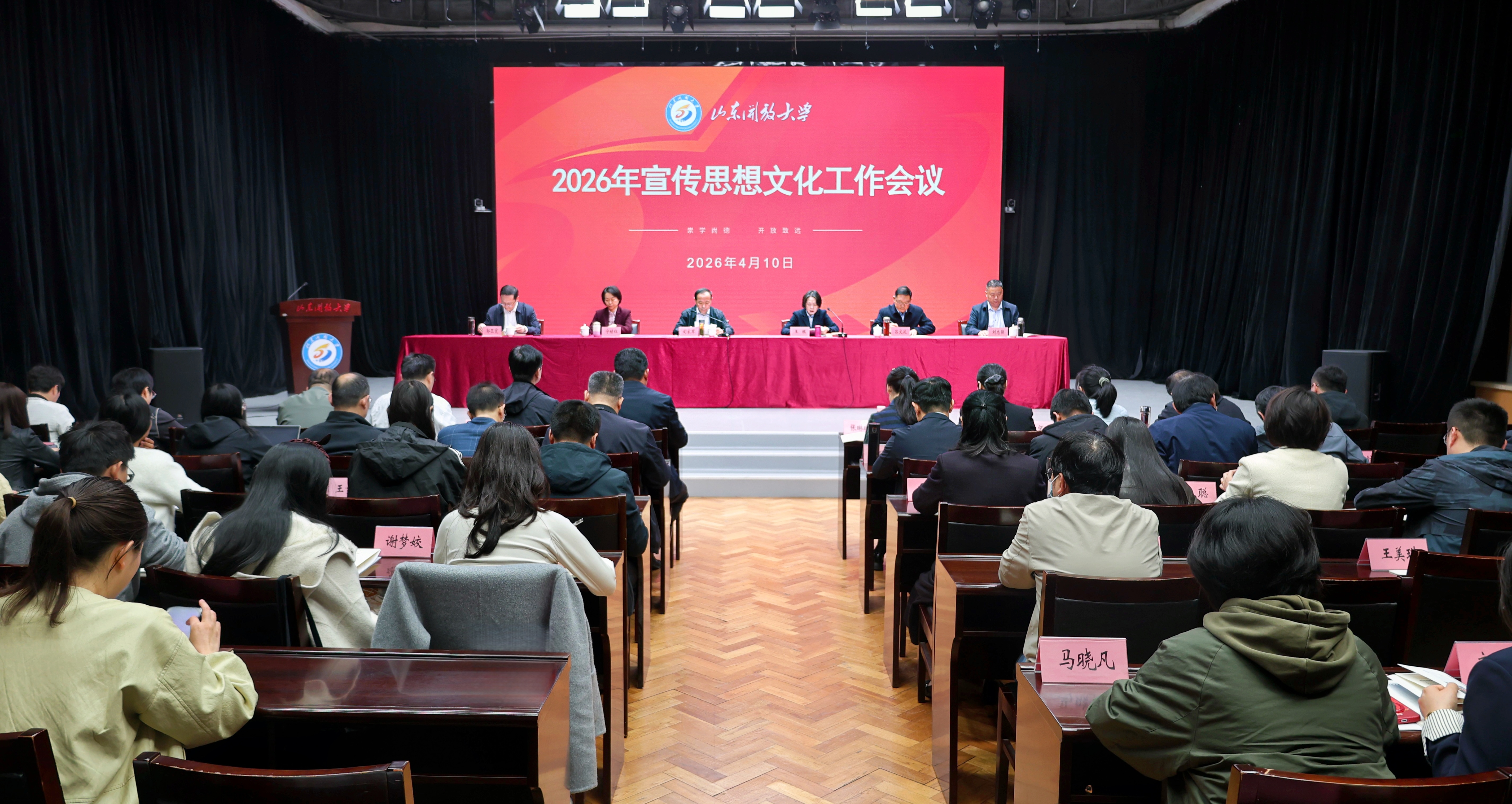 4月10日上午,学校在舜耕校区召开2026年宣传思想文化工作会议,深入学习贯彻习近平总书记关于宣传思想文化工作的重要论述,传达学习全国、全省宣传部长会议精神,总结2025年学校宣传思想文化工作,部署2026年工作任务。学校党委副书记、校长司家军出席会议并讲话,党委副书记王瑛主持会议,学校党委班子成员出席会议。